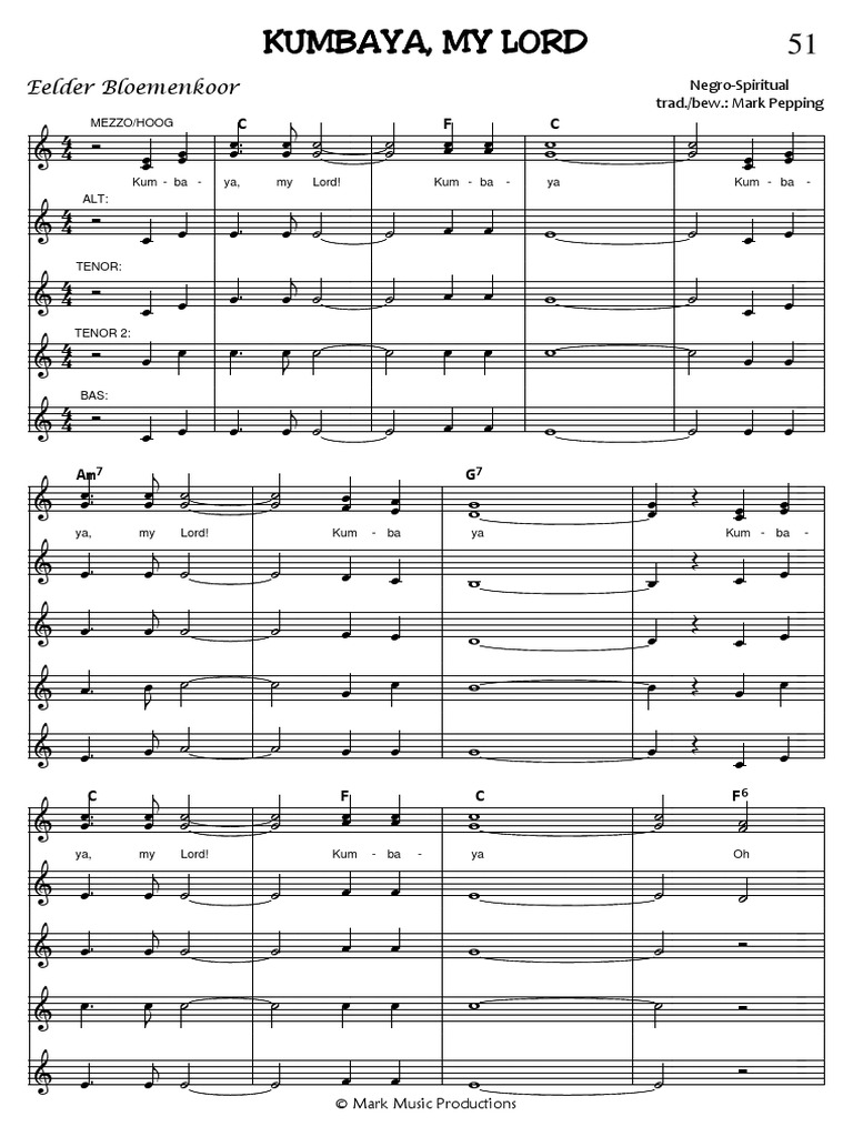 051 Kumbaya My Lord Pdf Styles De Musique D Amerique Du Nord Hymnes Chretiens
