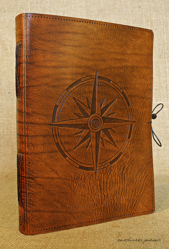 A4 Large Brown Leather Journal Compass Rose Design Hand Bound Earthworks Journals